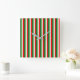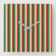 Green, Star White And Red Clover Pinstripes Square Wall Clock