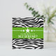 Tendance et moderne Stars Zebra Print Sweet sixteen Invitation avec un arrière - plan d'impression zèbre noir et blanc chic et une bordure verte chartreuse ornée d'un motif d'étoile amusant. Cette invitation girly est un choix branché et élégant pour une fête douce amusante 16. Facile à customiser, il suffit d'ajouter des détails dans les champs de texte fournis. Cliquez sur "Customiser" pour trouver d'autres options de personnalisation.