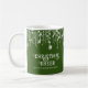 Green and white string lights sparkles Christmas mugs with a cute whimsical fun design with family name for a festive Holiday season.