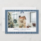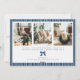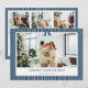 These editable 2-sided landscape classic Christmas photo holiday cards are a perfect way to share the holiday cheer and wishes for a happy holiday season. The DEVON Collection features a photo of your family with an editable Merry Christmas message on the front and the year in a classic serif font in navy blue. A backside is included with three family photos and a note, with a dark & light blue stripe pattern. A blue Christmas bow tops a photo holiday card that showcases your family photo, with a blue stripe pattern.