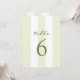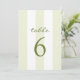 Set the tone for your special day with this timeless and sophisticated wedding table numbers featuring soft sage green vertical stripes and a casual handwritten typography. The delicate color palette creates a fresh, romantic feel, perfect for an outdoor summer venue.