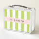 Green Stripes, Lines, Striped Pattern, Your Name Metal Lunch Box