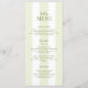 Set the tone for your special day with this timeless and sophisticated wedding menu card, featuring soft sage green vertical stripes and a casual handwritten typography. The delicate color palette creates a fresh, romantic feel, perfect for an outdoor summer venue.