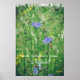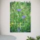 Green summer meadow with blue flowers poster