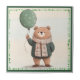 green sweater bear, fall plaid scarf bear, bear with green balloon, autumn bear design, cozy bear art, star balloon bear, green plaid bear, charming bear decor, autumn-themed bear, warm bear illustration