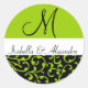 Swirl Damask Monogram Names Wedding Favour and Envelope Labels. Available in two sizes. Sticker design by Elke Clarke © 2010 Add your names, monogram and choose the back ground colour.. Great for wedding favours, cake boxes, invitation envelopes and more.