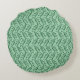 Round throw pillow with dark green swirly vines on a lighter green background.