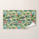 Green Teal Blooming Cacti Pattern Bath Towel Set