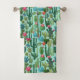 Green Teal Blooming Cacti Pattern Bath Towel Set
