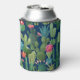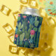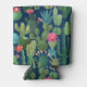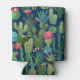 This is a pattern of decorative green and teal flowering cacti on a navy blue background.