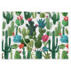 This is a pattern of decorative green and teal flowering cacti on a white background.