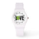 This unique tennis watch design features the word LOVE with O as a green tennis ball.