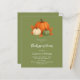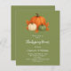 A sage green, olive green background. Decorated with retro looking pumpkins. With the text: Thanksgiving Dinner written with a modern hand lettered style script. Personalize and add the details.