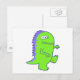 green three eyed dino monster postcard