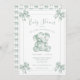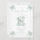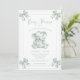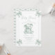 At the heart of the design, a delicate sage green toile elephant stands as a symbol of love and new beginnings. Graceful sage green toile bows adorn each corner, adding a touch of vintage charm. The soft, refined fonts perfectly complement the design, creating a timeless and sophisticated look.