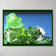 This photo was taken with a blue backround. The green beer and green top hat represents St. Patricks Day. Foils of clovers and leaves are around the beer. This photo can be made any size. Add a frame to this photo.