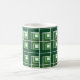 This mug has a geometric design made from Ls in shades of green laid in different directions repeating across the design.