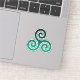Green Triskele symbol. The Triskele or Triskelion symbol consists of three interlocked spirals or three arms as if it is moving from its centre. This Celtic symbol of movement or action represents the three worlds; the celestial, physical, and spiritual.
