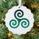 Green Triskele symbol. The Triskele or Triskelion symbol consists of three interlocked spirals or three arms as if it is moving from its centre. This Celtic symbol of movement or action represents the three worlds; the celestial, physical, and spiritual.