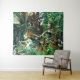 Photo of green thickets in the rainforest. In the foreground is a huge Croton tree with large bright decorative leaves.