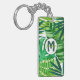 Colourful watercolor green tropical monstera, palms and fern leaves on a white background with monogram name design.