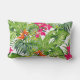 Green Tropical Leaves Pink Orange Flowers Lumbar Pillow