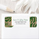 Green tropical monstera and palm leaves rustic wedding return address label. This beautiful design features a pattern of Split Leaf Philodendron (Monstera deliciosa) or Swiss Cheese Plant and palm leaves on paper with kraft look. The colours are teal blue, gold and white.