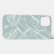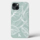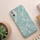 This iPhone case features a white tropical palm leaf pattern over a light green background. Personalize it with your initial, set in a bold, simple, modern font. A stylish, chic phone case — perfect for summer!