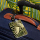 The tags design features an graphic depiction of adult green turtles (a type of sea turtle) illustrated by artist Dawn Witherington.