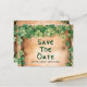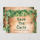 This Save the Date postcard for a St. Patrick's Day Irish wedding features a unique rustic vintage design with a green vine elegantly entwined around branches, all set against a charming wooden background. It is not the traditional clover motif, opting instead for a more elegant and nature-inspired look that perfectly captures the essence of a St. Patrick's Day celebration. The lush greenery of the vine adds a touch of natural beauty to the postcard, while the Celtic font used for the text enhances the overall Irish theme of the design. The combination of the green vine, wooden background, and Celtic font creates a harmonious and visually appealing Save the Date announcement that is sure to impress guests and set the tone for a memorable St. Patrick's Day wedding celebration.