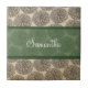Elegant and modern Vintage Zinnia Tile featuring a pretty textured floral background and an alluring green two-toned banner. Easy to customize, simply add the personalized text of your choosing in the text field provided. Click "Customize It" to find additional personalization options.