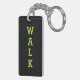 On one side of this rectangular keychain is a striking image of a crosswalk "WALK" figure traced out in bright apple green lightbulbs against a black background.