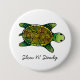 Green Watercolor Ink Drawn Turtle 3 Inch Round Button
