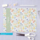 This tissue paper features a watercolor wildflower pattern in shades of green, yellow, orange, and blue.
