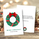 Share festive cheer with this charming Christmas greeting card featuring a green watercolor wreath tied with a red ribbon. Scattered around the wreath are candy canes, bright yellow and red circles, and silver stars, creating a playful and cozy holiday design perfect for sending warm Christmas wishes. GCard-005
