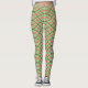 These leggings have a Boho design of green and orange waves on a field of light green.