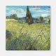 Green Wheat Field with Cypress. Vincent van Gogh. Cute summer landscape. There is a house on a green field. There is a tree growing next to the house. There is tall grass on the field. Clouds are running across the blue sky. Reproduction of famous works of art images in the public domain.