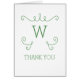 Modern and simple Whimsical Flourish Monogram Wedding Thank You Card featuring an elegant swirl motif in green. Easy to customize, simply add your initial and wedding details in the text fields provided. Click "Customize It" to find more personalization options.
