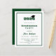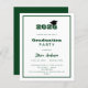 A modern and stylish invitation for a graduation party. For both him and her. White background, green text and a frame. A black graduation cap.