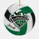 Volleyball Star Ornament featured in a green, white and black colour with a volleyball logo in the centre with diy name and number. A great gift for any volleyball player or volleyball enthusiastic. Made with high resolution vector and/or digital graphics for a professional print. NOTE: (THIS IS A PRINT. All zazzle product designs are "prints" unless otherwise stated under "About This Product" area) The design will be printed EXACTLY like you see it on the screen and on the product...so please make sure when you do your changes on the resizing of any of the graphics or text that it fits in the areas correctly and that your spelling and wording is how you like it to be in size, colour and font. Thank you for the support and stopping by my store - LetsUDesignIt