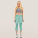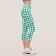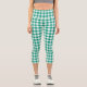 Green White Chequered Gingham Plaid Pattern Capri Leggings