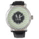 Green & White Chevron Pattern Watch