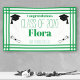 Honour your grad with this Green White Geometric Graduation Party Banner. Personalize with your grad's name, school, and class year. This class of 2024 school colours banner features feminine font and a decorative green and white border.