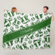 This cute volleyball team colours fleece blanket for girls features a pattern of varied size stylized green and white volleyballs turned every which way overlying a volleyball net detail graphic - the volleyballs' green panels are blended with an artsy, girly floral pattern - personalize her name in a sophisticated handwritten font on a bold, angled, full width green colour strip - background and name strip colours are customizable - by katz_d_zynes