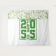 Create lasting memories with a camera and your Class of ____ Sport Typography Tapestry! White background, green typography, customizable year, and faux green and gold confetti header at top.