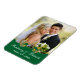 This modern forest green, white, and gold scrolls photo wedding favour flex magnet has a faux embossed green damask pattern background, with a faux gold glitter (PRINTED) ornate floral scroll with two decorative gold shamrocks on it that matches the wedding invitation shown below. It would be perfect for an Irish, Celtic, or St. Patrick's Day wedding celebration. It would work nicely for an elegant spring or summer wedding or anniversary. The text and paper is all customizable. ***PLEASE NOTE that if you change the fonts or size of the fonts, it may alter how your magnet prints. It will print the way you see it on your monitor, so if you have alignment issues, or sizing problems, please contact me for help. I will not see your magnet once you order it, and Zazzle will NOT edit anything (typos, alignment, etc.). If you require assistance or would like any other matching items, please email your request to niteowlstudio@gmail.com.