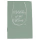 White and sage green Mother of the Bride elegant script calligraphy gift bag.