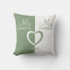 Green white Mr Mrs name heart wedding Throw Pillow