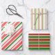 Green, White, Red Coloured Christmas Themed Lines Wrapping Paper Sheet