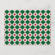 A classic graphic pattern of interlocking green and white diamond shapes. Each white diamond contains a small red diamond adding depth to the original design. Perfect for Christmas!